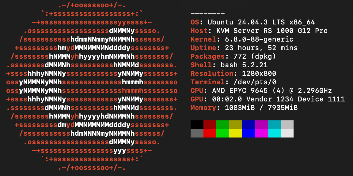 - CPU: AMD EPYC™ 9645 (4 Dedicated Cores)